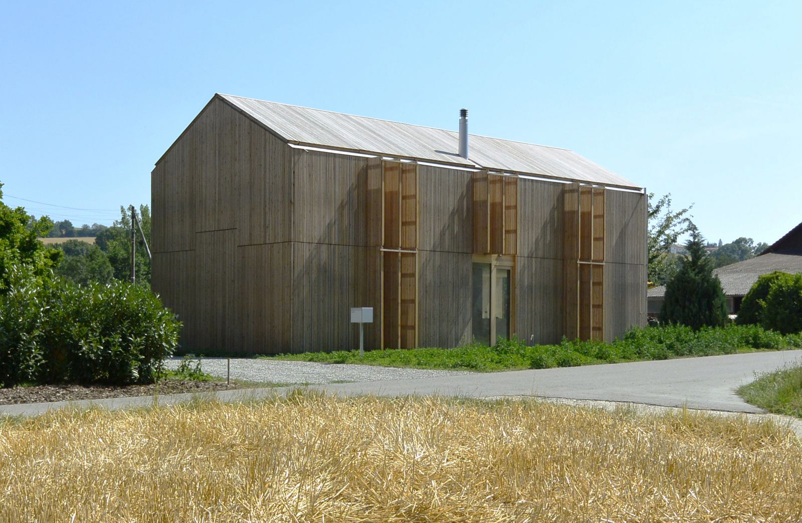Cette construction de 213 pièces réalisée en 35 jours effectifs sur site - 190m2 habitables, jusqu'à 7 pièces selon les configurations familiales choisies - s'attache à mettre en oeuvre avec une grande simplicité et un très faible impact sur l'environnement une habitation à la domesticité, à l'économicité et à la flexibilité élevées.