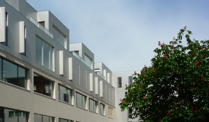 La typologie en appartements à deux niveaux décalés offre de vraies maisonnettes, regroupées 2 par 2 autour d'un puit de lumière.