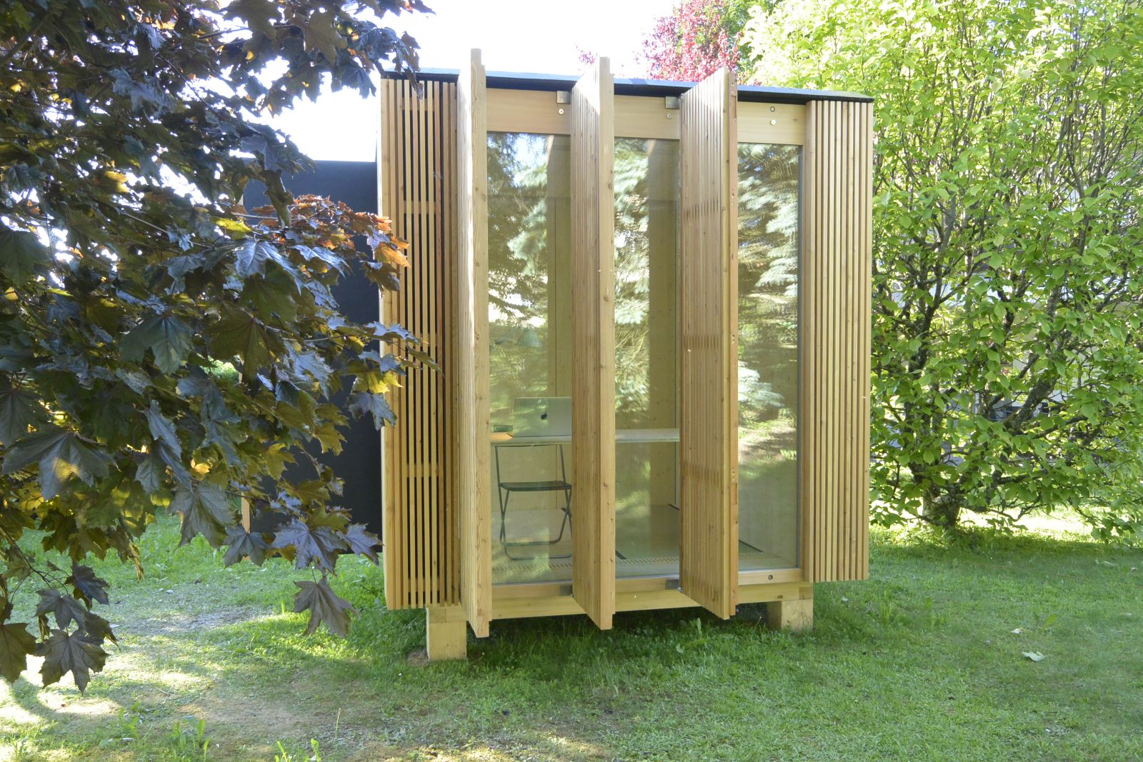 Assemblé à l'aide de composants développés pour une habitation mono-familiale. Premier jet devenu objet en soi.